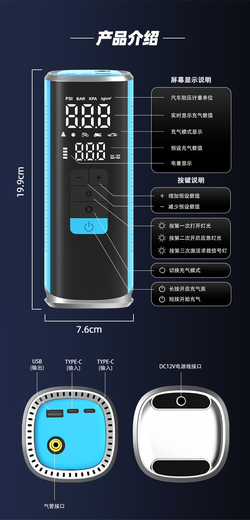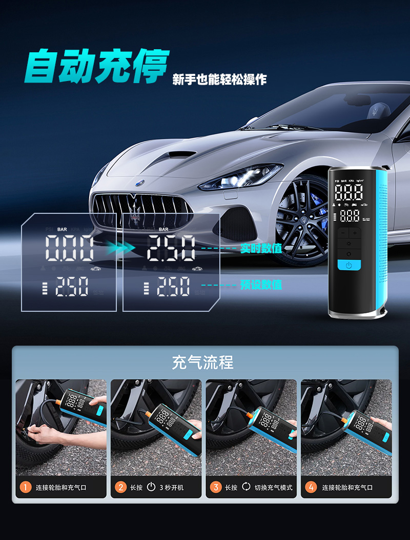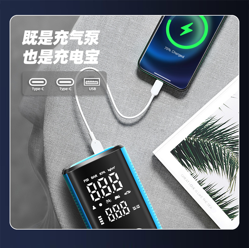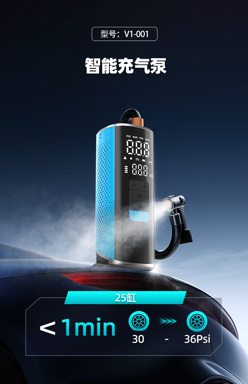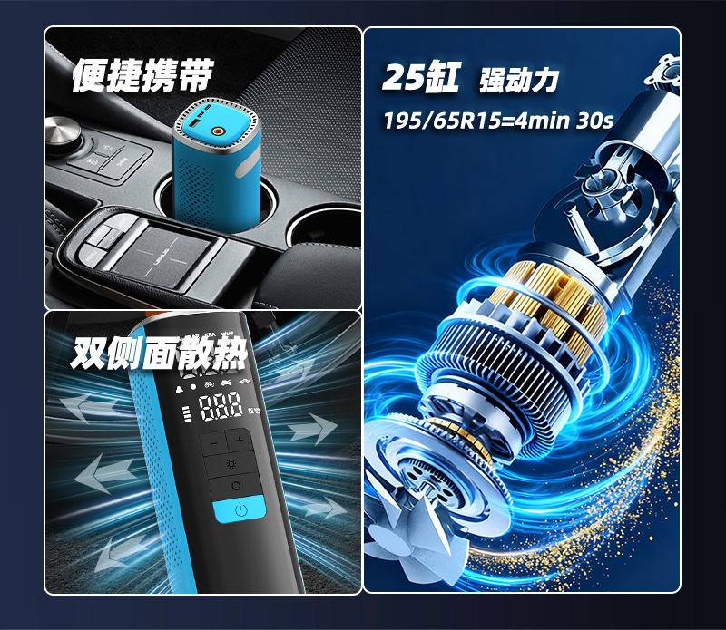 跨境新品25缸车载充气泵无线便捷式快充打气泵汽车自动充停轮胎